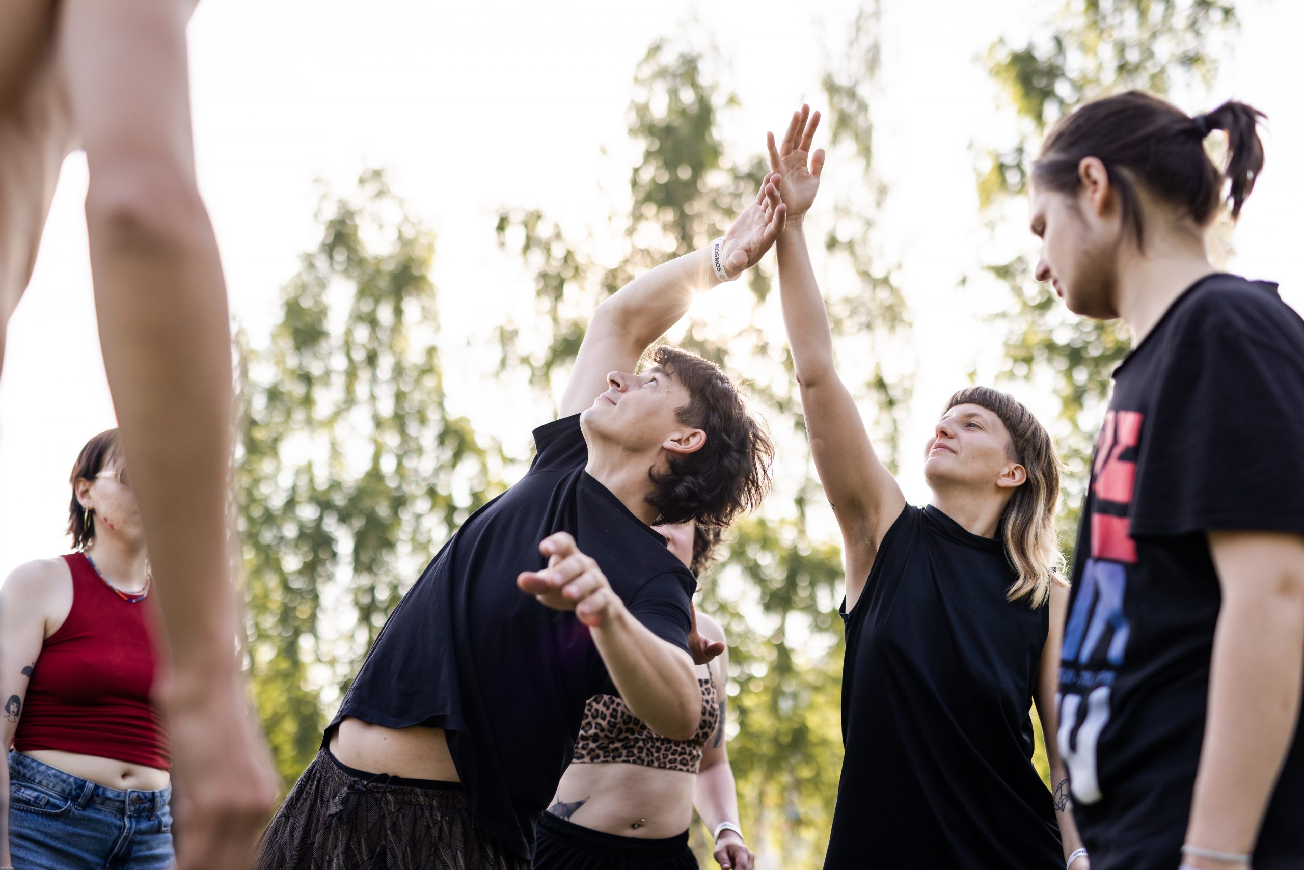 Aus diesen Impulsen entstanden Bewegungen, die Schritt für Schritt in den Austausch mit den anderen übergingen. Auch ohne Vorkenntnisse wurde erfahrbar, wie Tanz entstehen kann – direkt aus dem, was man braucht und fühlt. Zum Abschluss wagten wir uns sogar an erste Kontaktimprovisationen, bei denen Begegnung, Vertrauen und gemeinsamer Ausdruck im Mittelpunkt standen.